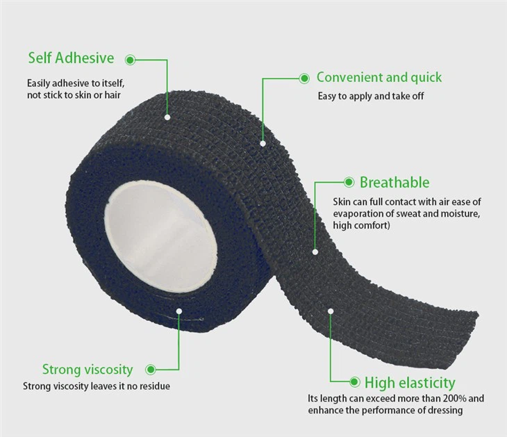 Өздігінен жабысқақ болгамен қапталған бөртпе матадан жасалған матадан немесе мақта матадан, спандекс және медициналық гипоаллергенді жабысқақ. Теріңізді жұмсақ және жайлы сезініп, күшті және керемет қолдауды қамтамасыз етеді. Желімнің екі түрі бар, біреуі латекс және біреуі латекссыз. Шын мәнінде, құрамында латекс құрамында латективті медициналық таспа латекссізден гөрі тиімді, сондықтан сатып алушылардың 95% -дан астамы латекске латекс таңданбайтын таңғыштар үшін жабысқақ таңғыштар ретінде таңдайды; Басқа өзін-өзі жабысатын таспалардан өзгеше, медициналық таспа жоғары температурамен зарарсыздандырылды.
